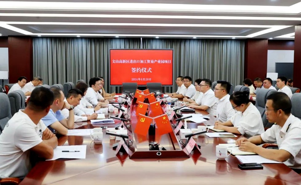 9月29日,文山高新區(qū)進出口加工貿(mào)易產(chǎn)業(yè)園項目正式啟動,會上集中簽約一批重點項目、與州內(nèi)部分企業(yè)家座談,公司高總就當前出口貿(mào)易形勢及對策作交流發(fā)言。州委常委、市委書記蔣俊,市委副書記、市長樂加文以及州、市有關(guān)部門及27家企業(yè)有關(guān)負責人參加。