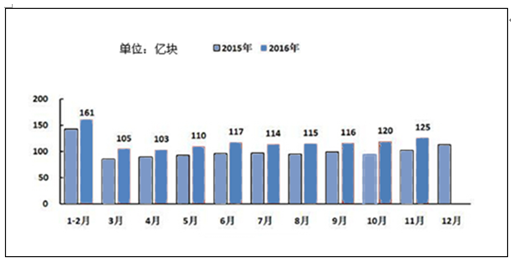 電子器件行業(yè)重點(diǎn)產(chǎn)品產(chǎn)量高位增長(zhǎng)。2016年1-11月,生產(chǎn)集成電路1191億塊,同比增長(zhǎng)20.9%;半導(dǎo)體分立器件5797億只,增長(zhǎng)10.6%。光伏電池6838萬千瓦,同比增長(zhǎng)16.6%。出口交貨值同比下降1.6%,其中11月份增長(zhǎng)0.9%。