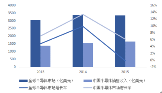 受宏觀經(jīng)濟(jì)因素的影響,全球半導(dǎo)體元器件需求不振。根據(jù)SIA公布的數(shù)據(jù),2015年全球半導(dǎo)體市場(chǎng)銷(xiāo)售額為3352億美元,同比下降了0.2%。全球半導(dǎo)體市場(chǎng)下滑的主要原因是PC銷(xiāo)售下降和智能手機(jī)出貨增速放緩。根據(jù)IDC統(tǒng)計(jì),2015年全球PC和平板出貨量同比下降約10%,而智能手機(jī)的增速?gòu)?014年27%降至10.13%。