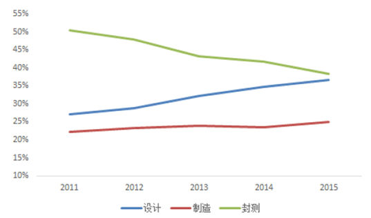 2011-2015年集成電路產(chǎn)業(yè)結(jié)構(gòu)變化趨勢(shì)