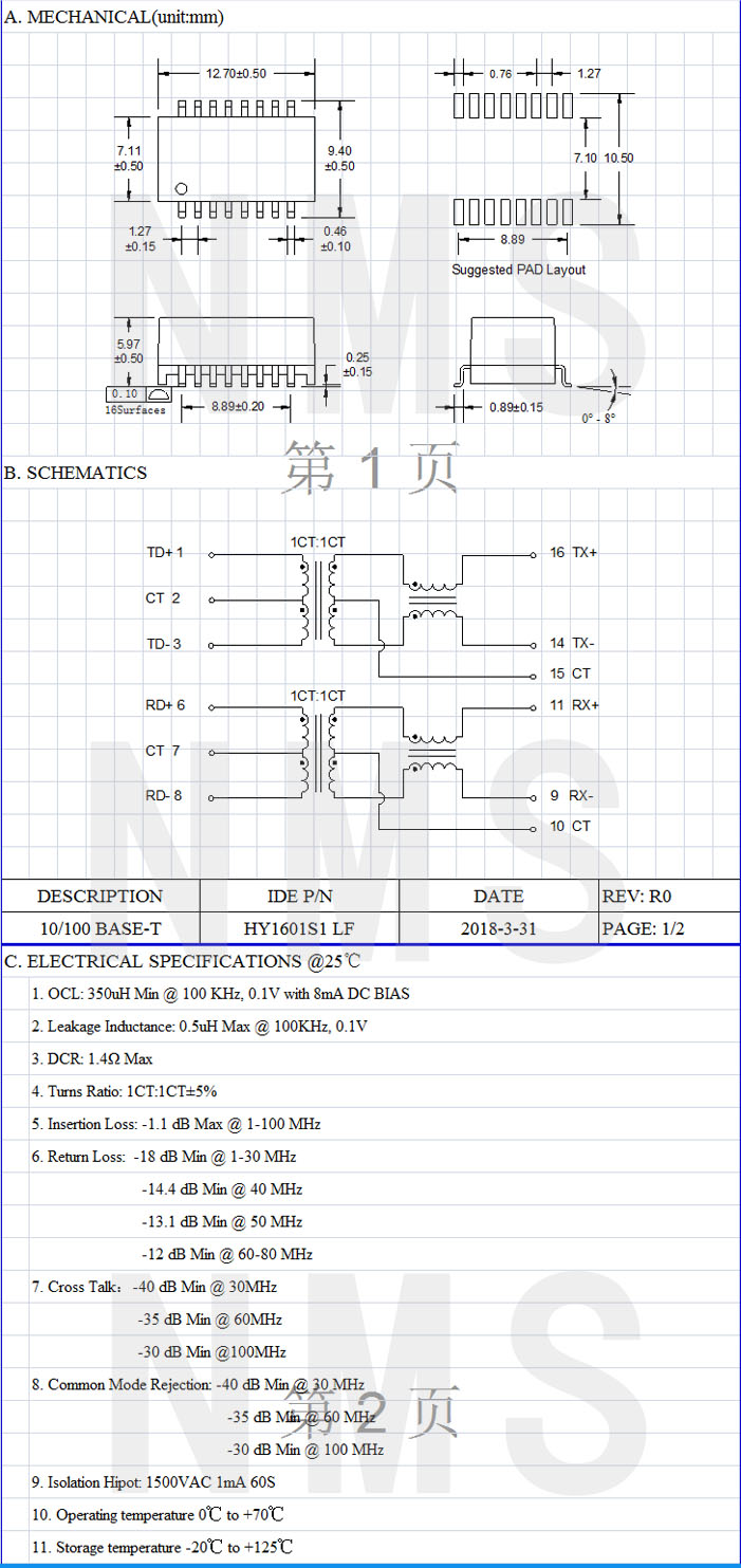 產(chǎn)品名稱(chēng):HY1601S1 LF