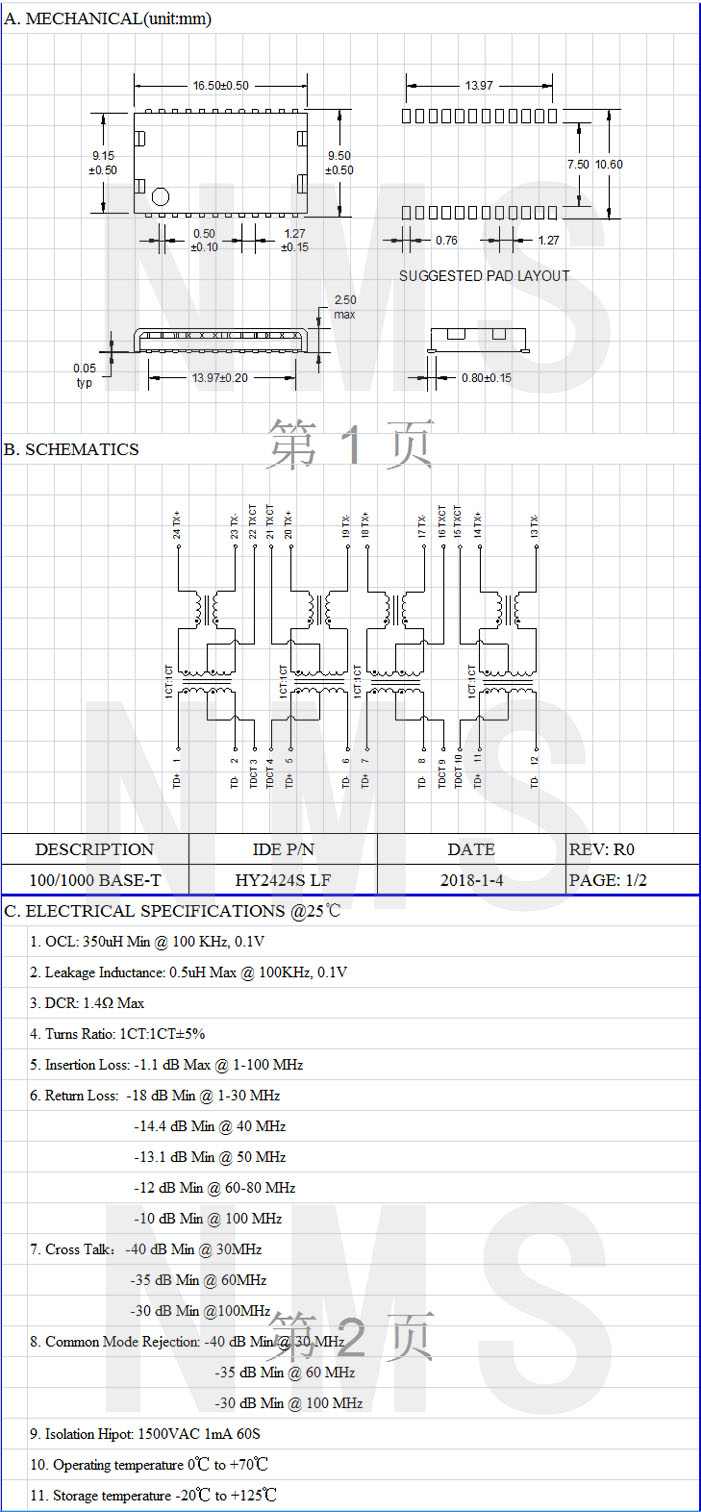 產(chǎn)品備注:SMD HY2424S LF產(chǎn)品系列